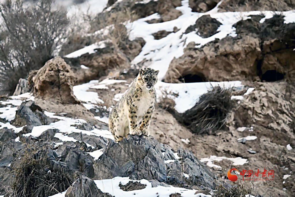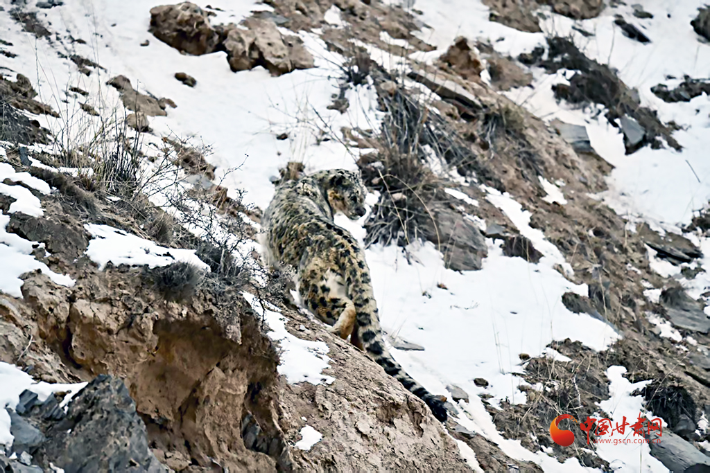 中國甘肅網(wǎng)4月30日訊(西北角·中國甘肅網(wǎng)記者 張慧雅 通訊員 楊寧 阿誠)近日,祁連山管護(hù)中心祁豐自然保護(hù)站工作人員在轄區(qū)開展日常巡護(hù)工作時(shí),在海拔4000米的山坳處,發(fā)現(xiàn)了一只成年雪豹,它灰白皮毛上的黑色環(huán)紋如天然迷彩,琥珀色瞳孔在風(fēng)雪中凝視,蓬松長尾優(yōu)雅垂落,與身后嶙峋雪巖渾然一體。