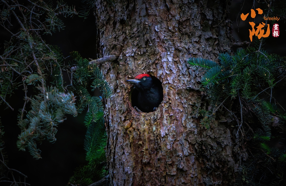 黑啄木鳥是一種大型的啄木鳥。它們的體長(zhǎng)可達(dá)到45-50厘米,翼展可以達(dá)到65-75厘米,體重在250-350克之間。其外形非常有特色,它們的羽毛主要是黑色的,胸部和腹部有一些白色的斑點(diǎn),頭部有一個(gè)紅色的冠羽,這是它們的顯著特征之一。黑啄木鳥的喙非常強(qiáng)壯,呈灰黑色,非常適合在樹木上啄洞。