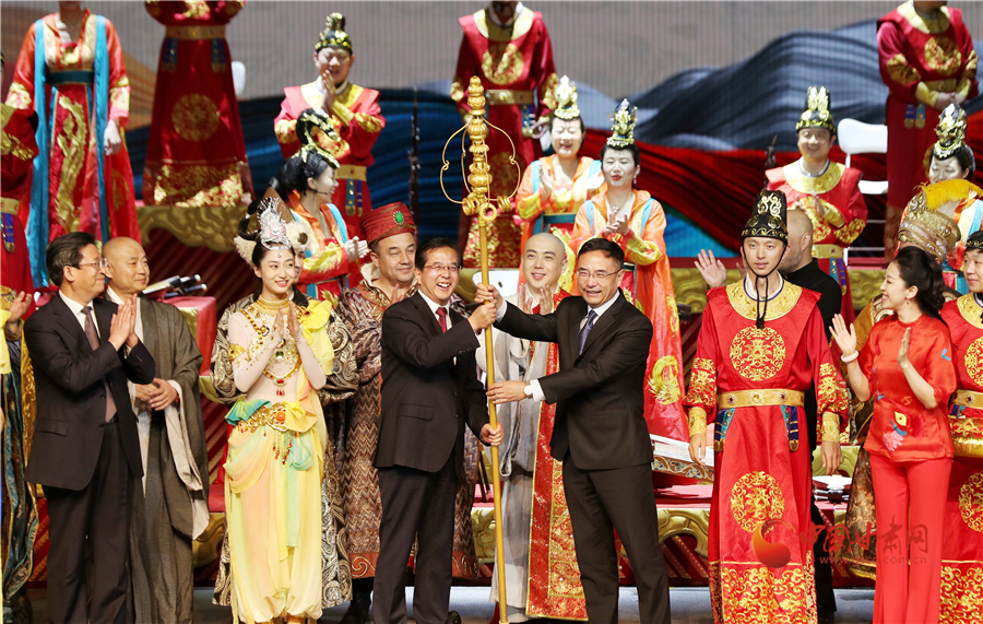 《玄奘西行》作為世界首部大型民族器樂(lè)劇,以絲綢之路文化交流使者玄奘的歷史故事為題材,集多民族樂(lè)器演奏和戲劇表演為一體,集中展示了敦煌莫高窟壁畫(huà)復(fù)原古樂(lè)器及古絲綢之路各民族傳統(tǒng)音樂(lè)的美妙旋律,體現(xiàn)了當(dāng)代民族音樂(lè)的繼承與創(chuàng)新精神,是我國(guó)民族器樂(lè)舞臺(tái)藝術(shù)的高峰之作。演出結(jié)束后,中央民族樂(lè)團(tuán)向甘肅省文藝院團(tuán)捐贈(zèng)舞美道具,并指導(dǎo)幫助甘肅省文藝院團(tuán)實(shí)現(xiàn)《玄奘西行》的常態(tài)化駐場(chǎng)演出,為甘肅省再添一張靚麗的文藝名片。
