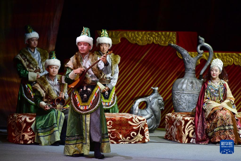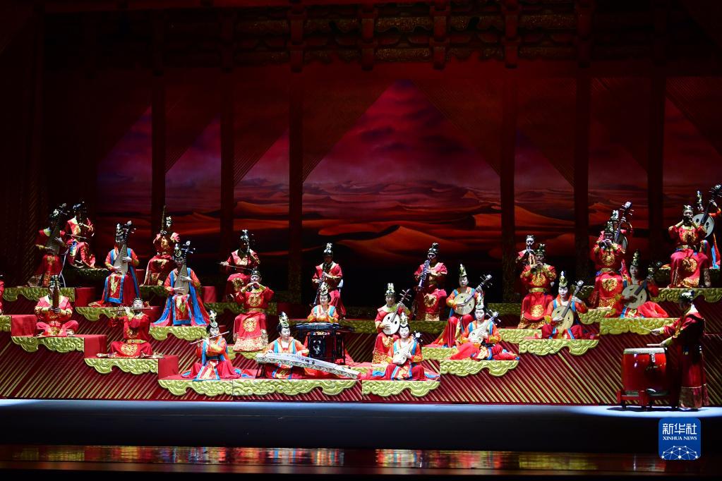 演員在敦煌大劇院表演大型民族器樂劇《玄奘西行》(9月23日攝)。新華社記者 陳斌 攝