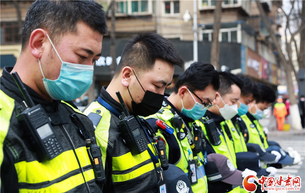 警報長鳴 駐足垂首 蘭州交警深切哀悼新冠肺炎疫情犧牲烈士和逝世同胞