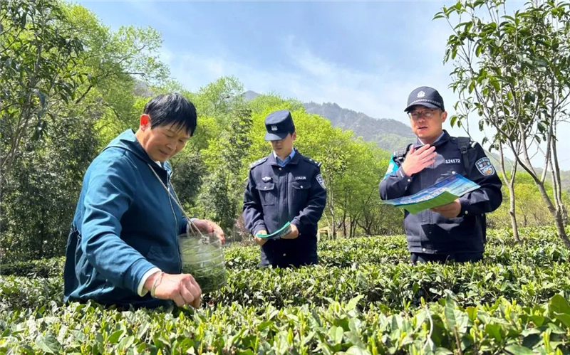 清明節(jié)后,隴南市康縣的茶樹鮮嫩的新芽迎風而立,茶農們穿行在茶樹間熟練地采摘嫩芽,同樣忙碌不歇的還有轄區(qū)派出所的民警們,他們上茶山、進茶園、問需求、解糾紛,成為春茶豐收畫卷中的一抹別樣的“警”色。
