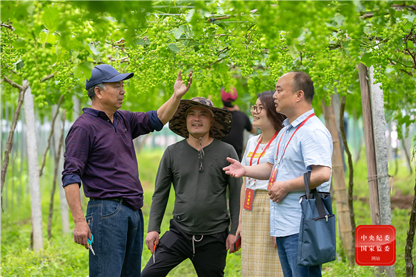 杭州市淳安縣紀(jì)檢監(jiān)察干部在富文鄉(xiāng)走訪葡萄種植戶,了解農(nóng)業(yè)產(chǎn)業(yè)扶持政策兌現(xiàn)情況,幫助解決困難,通過(guò)精準(zhǔn)有效監(jiān)督保障各項(xiàng)惠農(nóng)政策落實(shí)。(杭州市淳安縣紀(jì)委監(jiān)委 毛勇鋒 攝)