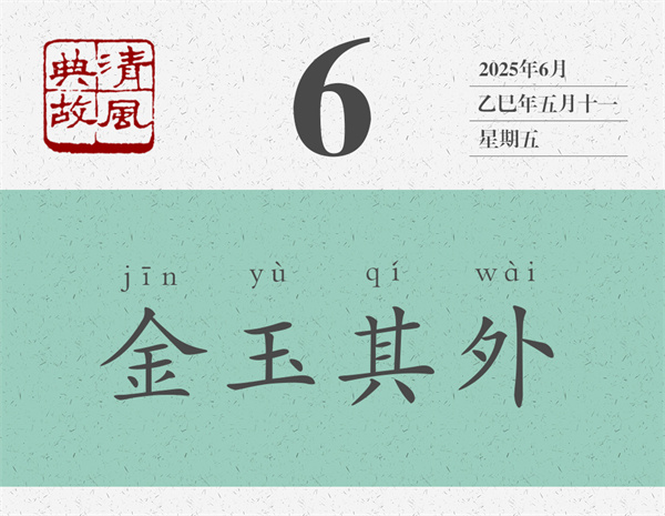 “金玉其外”原是說柑橘的,指其徒有其表,后以之為典,喻人表里不一,名不副實。如民間所謂之“驢糞蛋外面光”,亦如李寶嘉《官場現(xiàn)形記》所言之“金漆飯桶”。海瑞《主簿參評》:“茍不盡分稱職,金玉其外而敗絮其內(nèi)也……”