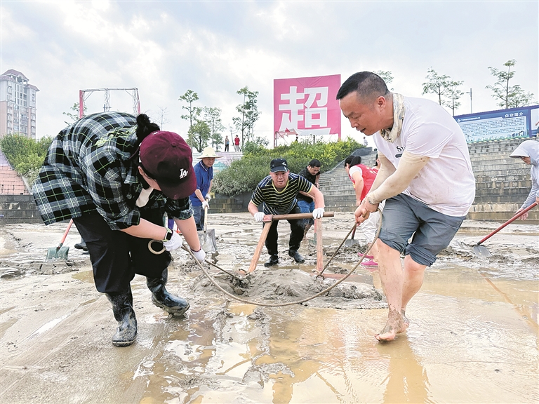 廣西壯族自治區(qū)柳州市融安縣紀委監(jiān)委聞“汛”而動,緊盯防汛統(tǒng)籌協(xié)調(diào)等關鍵環(huán)節(jié)開展全程監(jiān)督檢查。圖為日前,該縣紀檢監(jiān)察干部在河東龍舟廣場開展災后清淤工作。覃燕 攝