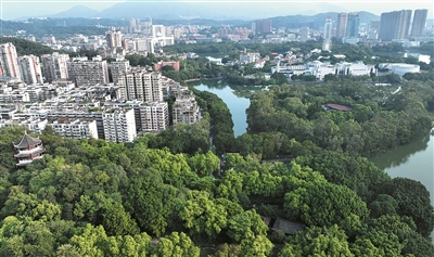 福建省福州市濕地資源豐富,全市濕地面積19.42萬(wàn)公頃,濕地率15.14%,約占福建省濕地面積的三分之一,位居全國(guó)濱海城市前列。圖為近日拍攝的福州西湖——左海濕地公園沿岸城市風(fēng)光。 新華社記者 魏培全 攝