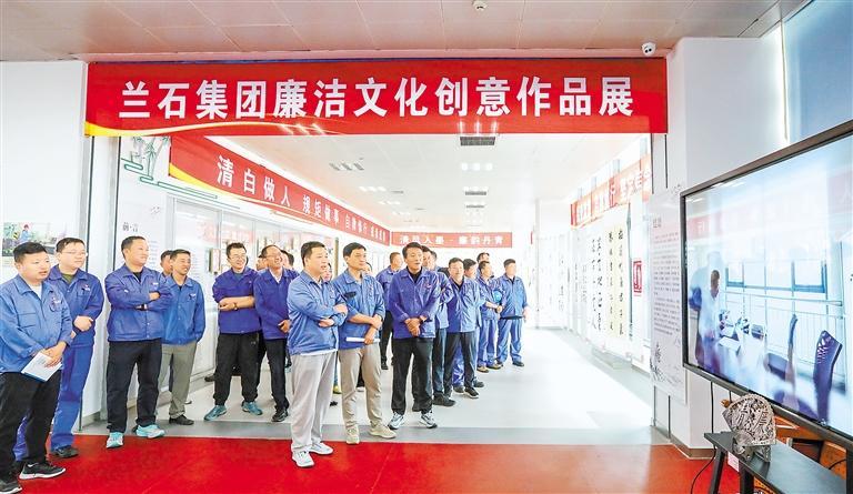蘭石集團黨員干部職工參觀廉潔文化創(chuàng)意作品展。蘭石集團紀委供圖