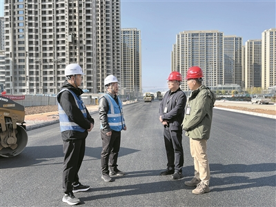 圖為近日,甘肅省蘭州市紀(jì)委監(jiān)委駐市住建局紀(jì)檢監(jiān)察組工作人員在七里河區(qū)崔家大灘片區(qū)T095-1#道路項(xiàng)目施工現(xiàn)場,了解項(xiàng)目進(jìn)展情況。吳靜 攝