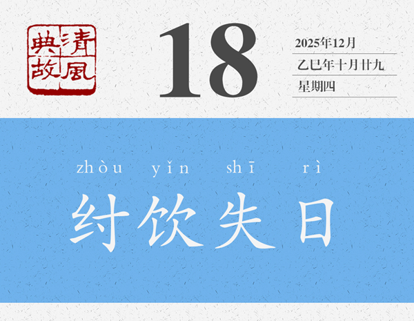 一提起商紂王,大概就會(huì)想起沉湎酒色、窮兵黷武、重刑厚斂等等,與之相關(guān)的典故也有酒池肉林、炮烙之刑、牝雞司晨等等。“歡以失日”是他沉湎酒色的又一個(gè)故事,往輕處說(shuō)就是酒醉失憶了,往重處說(shuō)就是把一切都拋到九霄云外了。箕子,即子胥余,商紂王的叔父,官至太師,封于箕,故稱箕子,“殷末三仁”之一,《論語(yǔ)·微子》曰:“微子去之,箕子為之奴,比干諫而死,殷有三仁焉。”箕子曾多次勸諫紂王,但紂王不聽(tīng),他心灰意冷,索性披發(fā)佯狂,紂王見(jiàn)此,以為箕子真瘋了,遂將他囚禁起來(lái),貶為奴隸。有了這個(gè)背景,就知道箕子為什么要“辭以醉而不知”了。后世則以“紂飲失日”為典,形容生活荒唐混亂,也用來(lái)形容不辨時(shí)間。黃遵憲詩(shī)《倫敦大霧行》:“蒼天已死黃天立,倒海翻云百神集。一時(shí)天醉帝夢(mèng)酣,舉國(guó)沉迷同失日。”
