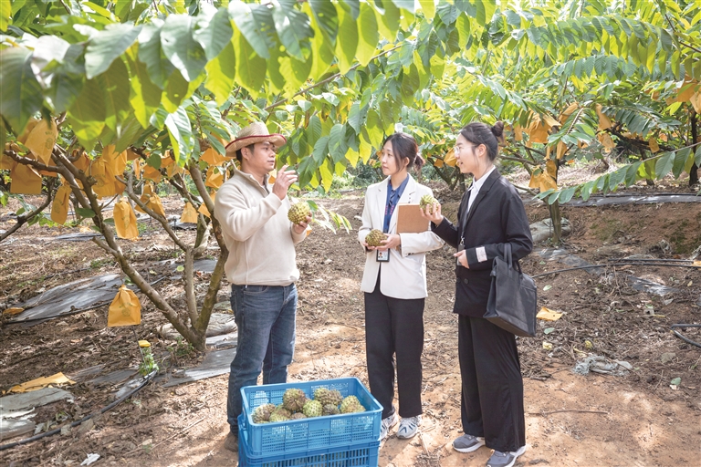 廣東省四會(huì)市紀(jì)委監(jiān)委把“百千萬工程”作為政治監(jiān)督的“頭號(hào)工程”來抓,圍繞產(chǎn)業(yè)發(fā)展、土地資金要素保障、干部作風(fēng)等開展精準(zhǔn)監(jiān)督。圖為近日,該市紀(jì)委監(jiān)委干部到逕口鎮(zhèn)釋迦果種植基地走訪了解有關(guān)情況。胡源 攝