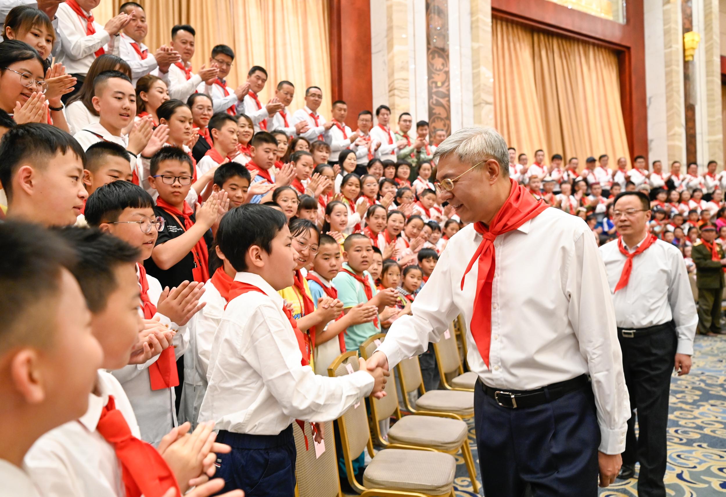 尹弘指出,廣大少年兒童既是實現(xiàn)第一個百年奮斗目標(biāo)的親歷者見證者,也是實現(xiàn)第二個百年奮斗目標(biāo)、建設(shè)社會主義現(xiàn)代化強國的預(yù)備隊生力軍。大家要牢記習(xí)近平總書記殷切囑托,熱愛黨、熱愛祖國、熱愛人民,堅定理想信念,學(xué)好文化知識,磨礪品格意志,努力成為德智體美勞全面發(fā)展的社會主義合格建設(shè)者和可靠接班人。希望廣大少先隊員爭做理想遠(yuǎn)大的好少年,時刻準(zhǔn)備著為實現(xiàn)中華民族偉大復(fù)興中國夢和建設(shè)幸福美好新甘肅作貢獻(xiàn);爭做勤奮學(xué)習(xí)的好少年,當(dāng)好敏于求知、勇于創(chuàng)造的小標(biāo)兵;爭做品德高尚的好少年,成為有愛心、懂感恩、求上進(jìn)的新一代;爭做體魄強健的好少年,為今后快樂工作、幸福生活打牢健康底子。