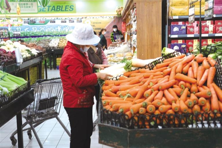 3月21日,華聯(lián)超市交大店內(nèi),各大貨柜上的商品種類齊全,大米、面粉、食用油、蔬菜水果、面點(diǎn)熟食、肉禽水產(chǎn)等百姓日常生活所需的物品儲備充足。前來購物的市民在各個(gè)區(qū)域從容購物、理性消費(fèi)。在果蔬區(qū)域,市民正在挑選蔬菜、水果,售貨員及時(shí)補(bǔ)充蔬菜,整齊擺放在貨架上。安寧區(qū)保障生活物資供應(yīng)平穩(wěn)有序,通過生活用品進(jìn)貨量、出貨量、庫存量以及貨品價(jià)格日監(jiān)測、疏通物流渠道,確保百姓的“米袋子”“菜籃子”“果盤子”以及各類生活用品數(shù)量充足、價(jià)格穩(wěn)定。該區(qū)商務(wù)、市場監(jiān)管等職能部門持續(xù)對區(qū)域內(nèi)各大商場、超市進(jìn)行追蹤服務(wù)和監(jiān)督,落實(shí)常態(tài)化疫情防控各項(xiàng)措施,配合商場進(jìn)一步做好防疫工作,為市民提供一個(gè)安全、穩(wěn)定的消費(fèi)環(huán)境。