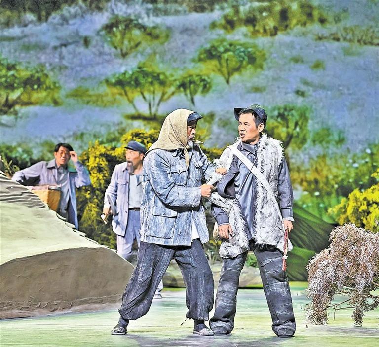 現(xiàn)實題材是話劇藝術(shù)的寵兒,在話劇進(jìn)入中國一百多年的時光中,現(xiàn)實題材創(chuàng)作占據(jù)相當(dāng)大的比例。在近當(dāng)代中國歷史的進(jìn)程中,話劇始終起著敢為天下先、針砭時弊的作用,但話劇又有其極其特殊的藝術(shù)框范。人們在觀看話劇時,仿佛就是在觀看自己的人生,觀看自己和身邊最熟悉的人們,這是話劇藝術(shù)獨(dú)具的極高的審美要求。尤其是現(xiàn)代題材的創(chuàng)作,稍有不慎便會陷入同質(zhì)化的僵硬模式,使舞臺藝術(shù)失去應(yīng)有的美感。話劇《八步沙》讓6個老漢成為舞臺聚光燈下的主角,體現(xiàn)了創(chuàng)作者們呼應(yīng)時代之需,為最普通的農(nóng)民寫生立傳的拳拳之心。6個老農(nóng)民談不上人們通常意識中的“美”,“治沙”這樣的故事也相對比較單調(diào),不大容易出彩,而創(chuàng)作者們以八步沙這個真實的地名作為劇名,以“六老漢”治沙這個真實的事件作為全劇的敘述內(nèi)容,卻能宕開一筆把特定的外部環(huán)境與人物的內(nèi)心世界巧妙地融為一體,為全劇注入了濃郁飽滿的戲劇情境和情感,使這部話劇有了獨(dú)屬于自己的一份力度、一份無法替代的光彩。全劇的情節(jié)一曲三折,以小見大,當(dāng)黑壓壓的沙塵暴鋪天而來的時候,當(dāng)六老漢在嚴(yán)酷的環(huán)境中吃盡苦頭,摸索出“一棵樹,一把草,壓住沙子防風(fēng)掏”的寶貴經(jīng)驗,使漫無邊際的沙漠終于出現(xiàn)一抹綠色,繼而眼看著一棵又一棵綠樹成活成林,終于成為一片綠洲的時候,我相信觀眾的心也被藝術(shù)琴弦撥動,始終被劇情牽著走,為劇中人物的命運(yùn)擔(dān)心、懸心、痛心、開心,從中深深地感受到劇中所蘊(yùn)藏的豐富內(nèi)涵和它所傳達(dá)出的真切意趣。