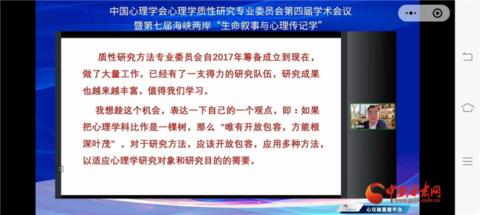 本次會議以“新征程中的中國質性心理學”為主題,由中國心理學會心理學質性研究專業(yè)委員會、西北師范大學共同主辦,西北師范大學心理學院和甘肅省心理學會承辦。來自美國、南非以及國內北京師范大學、蘇州大學、華東師范大學、輔仁大學等高校和科研機構的400余位學者,通過線上線下方式參加。