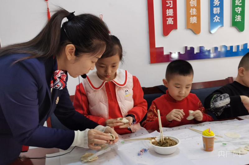 孩子們聽老師講傳統(tǒng)習(xí)俗體驗(yàn)包餃子(央廣網(wǎng)發(fā) 唐欣 攝)