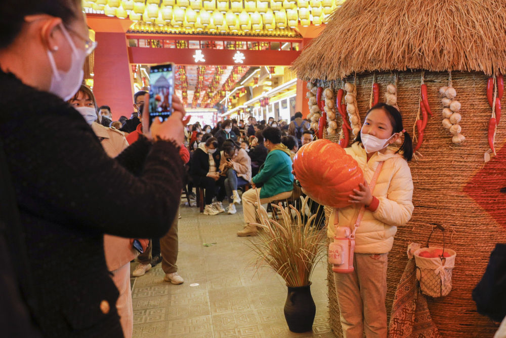 ↑3月25日,小游客在“黃河食渡文化夜市”拍照留念。