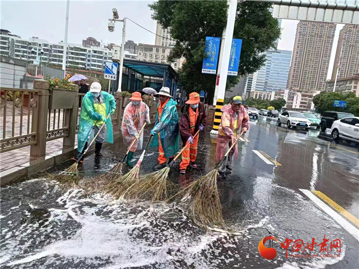 蘭州市出動環(huán)衛(wèi)工人1.2萬余人次 開展道路排澇清淤工作