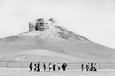 8月6日,游客在甘肅省敦煌市陽(yáng)關(guān)景區(qū)游覽。新華社發(fā)