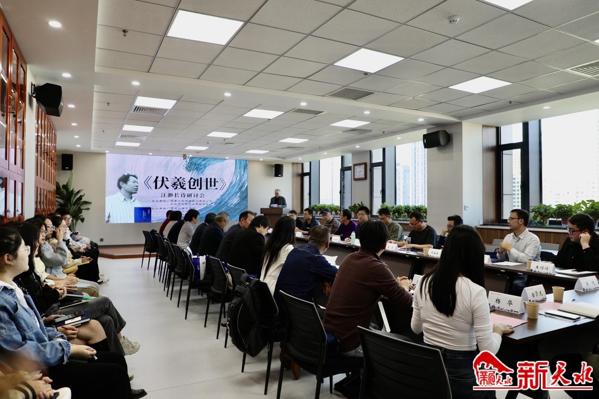 西北大學文學院副院長陳然興主持研討會。西北大學文學院副院長陳曉輝致辭。天水市文聯黨組書記、主席楊清汀,敦煌文藝出版社社長楊繼軍,詩人、評論家宋寧剛,導演、作家、詩人陳非等來自甘肅及陜西兩地的作家、評論家、導演、編輯共約30人,就汪渺作品《伏羲創(chuàng)世》展開深入交流,在史詩的界定、文本閱讀感受以及作品的再創(chuàng)造等層面進行探討。