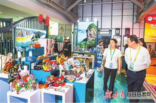 為更好推動(dòng)優(yōu)秀傳統(tǒng)文化創(chuàng)造性轉(zhuǎn)化、創(chuàng)新性發(fā)展,全面展示甘肅省非遺、文創(chuàng)最新成果,推動(dòng)文旅貿(mào)深度融合,我省以“交響絲路·如意甘肅”為主題,在進(jìn)博會(huì)人文交流展區(qū)搭建甘肅省展區(qū),展示蘭州黃河鐵橋、天水麥積山、平?jīng)鲠轻忌?、九色甘南扎尕那、張掖七彩丹霞、嘉峪關(guān)關(guān)城、隴南官鵝溝等甘肅省熱門(mén)景區(qū)圖片,全方位立體式向與會(huì)嘉賓展示甘肅厚重的文化底蘊(yùn)和豐富的旅游資源。