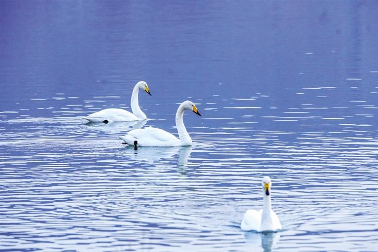 “生態(tài)好不好,鳥兒是晴雨表。”近日,西固區(qū)達(dá)川鎮(zhèn)三河口迎來(lái)了今年首批越冬大天鵝,吸引了眾多市民游客前往觀賞。記者從蘭州市林業(yè)局了解到,目前黃河蘭州段濕地分布和棲息的濕地鳥類約有68種,其中,國(guó)家I級(jí)重點(diǎn)保護(hù)鳥類3種(黑嘴鷗、黑鸛、白尾海雕),國(guó)家II級(jí)保護(hù)鳥類5種(大天鵝、鴛鴦、鹮嘴鷸、白腰杓鷸、鶚)。鵲鴨、綠頭鴨、斑嘴鴨、普通秋沙鴨和漁鷗等優(yōu)勢(shì)越冬水鳥種群數(shù)量較大,主要棲息地分布在沿線各灘涂地,棲息地質(zhì)量較高。