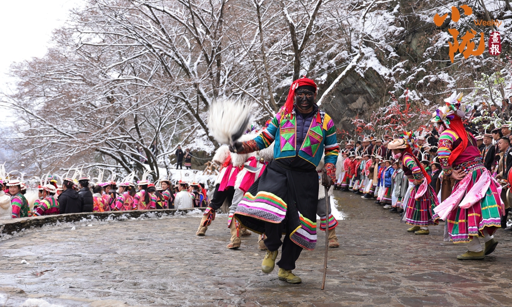 河畔的小路上和河岸的觀景臺上,白馬人身著特色服飾,錯落有致,載歌載舞,跳起了獨具魅力的“池哥晝”。