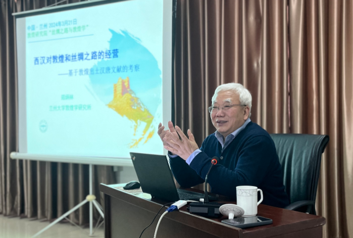 2024年3月21日下午,蘭州大學(xué)鄭炳林教授應(yīng)邀在“絲綢之路與敦煌學(xué)”系列公益學(xué)術(shù)講座主講《兩漢對(duì)敦煌和絲綢之路的經(jīng)營(yíng)》。講座由敦煌研究院敦煌文獻(xiàn)研究所主辦,趙曉星研究員主持,在蘭州分院舉行。我院專家學(xué)者,蘭州大學(xué)、西北師范大學(xué)、西北民族大學(xué)師生,及敦煌學(xué)愛好者50余人現(xiàn)場(chǎng)參加了此次學(xué)術(shù)活動(dòng)。