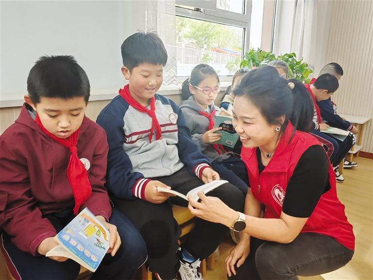 聽(tīng)志愿者娓娓道來(lái),孩子們興趣漸濃,紛紛被書中精彩的故事和人物所吸引,社工王樹清、戎笑辰還和同學(xué)們結(jié)成了“讀書搭子”,約定定期分享好書和閱讀感悟。“讓孩子們?cè)诜窒砘?dòng)中激發(fā)閱讀熱情,可以更好地理解和感受書籍中的世界,對(duì)他們成長(zhǎng)非常有幫助。”王樹清說(shuō)。
