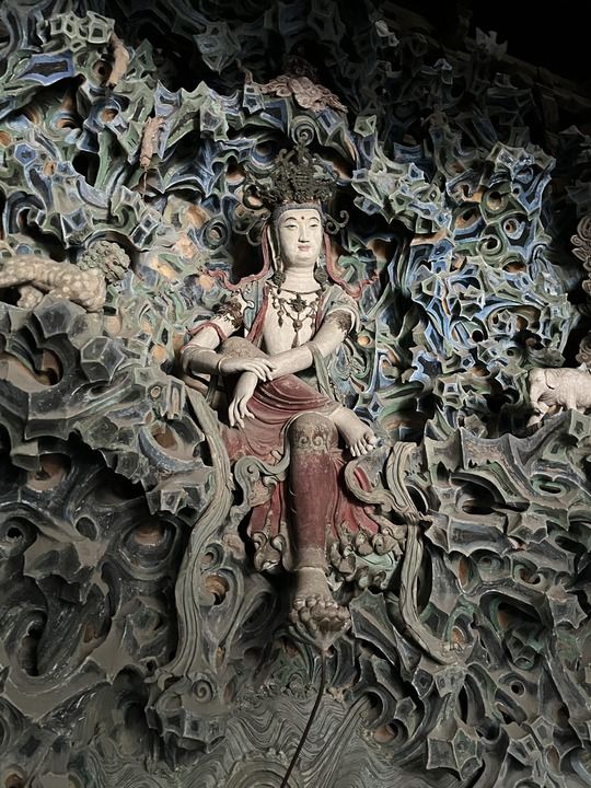 隆興寺摩尼殿是梁思成眼中的“藝臻極品”。其中,最令人震撼的,無疑是被譽(yù)為“東方美神”的倒坐觀音塑像。