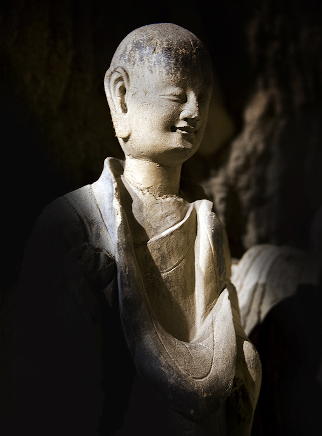 麥積山石窟始建于384-417年,現(xiàn)存有221座洞窟、10632身泥塑石雕、1300余平方米壁畫(huà)。麥積山石窟的獨(dú)特之處在于,雕塑的人物形象沖破了佛像造型的固有風(fēng)格,不再莊重嚴(yán)肅,更加貼近生活,充滿(mǎn)人間溫度。