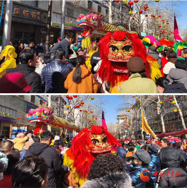 社火表演內(nèi)容豐富多樣、精彩紛呈?,F(xiàn)場的笑聲、喝彩聲不斷。此外,威風的關公扮相,將福氣傳遞給市民,巨龍盤旋騰飛、獅子翻騰跳躍的舞龍舞獅更是吸睛,觀眾紛紛上前摸獅頭、鉆龍身,祈愿新的一年平安順遂?,F(xiàn)場市民都沉浸在無盡的歡樂與喜悅之中,孩子們在人群中歡呼雀躍,大人們也紛紛掏出手機,記錄下這難忘的瞬間,臉上綻放著幸福的光彩。