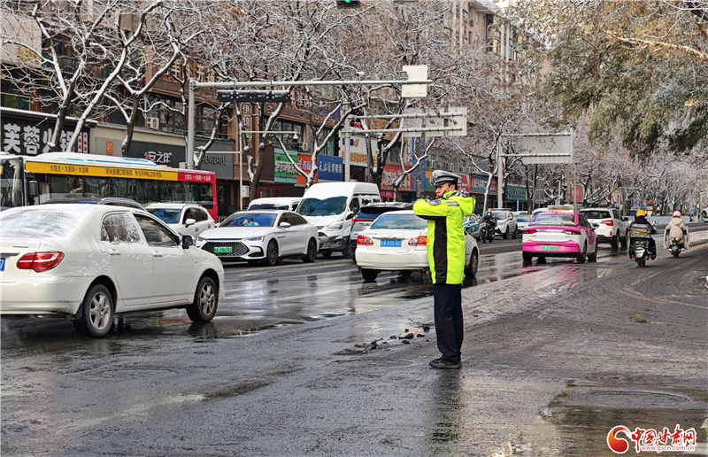 11月24日,蘭州市迎來(lái)降雪天氣,城區(qū)道路積雪濕滑,給早高峰交通通行帶來(lái)嚴(yán)峻考驗(yàn)。蘭州市公安局聞雪而動(dòng),第一時(shí)間啟動(dòng)惡劣天氣應(yīng)急預(yù)案,全警動(dòng)員投入疏堵保暢工作,用堅(jiān)守為市民出行筑牢安全防線。