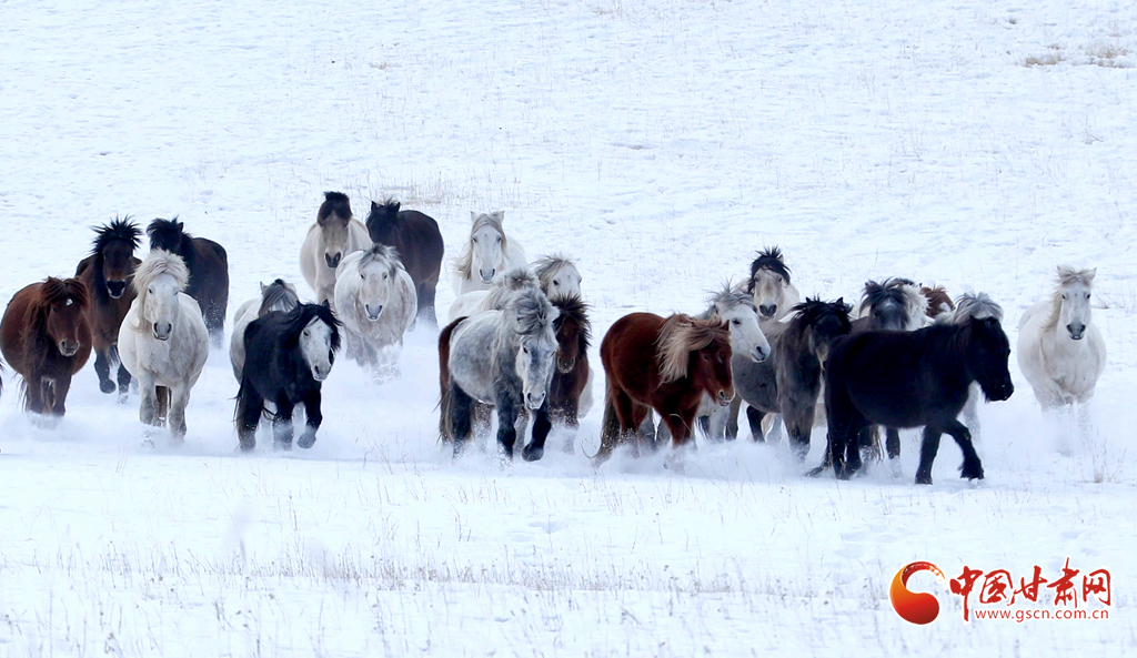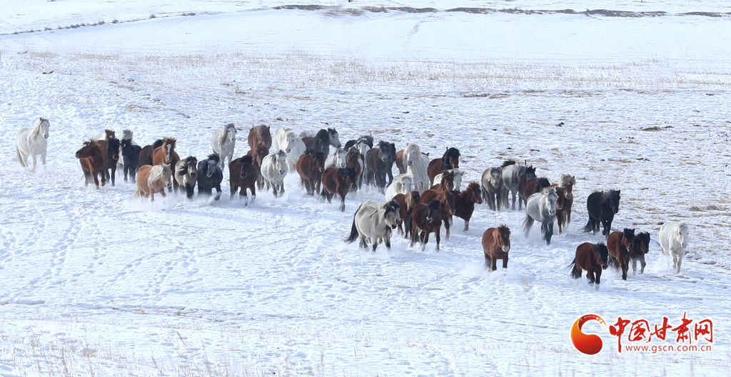 1月30日,張掖市肅南裕固族自治縣康樂草原上,康豐村牧民策馬馳騁,百匹駿馬踏雪奔騰,牧民們用這種獨(dú)特的方式迎接即將到來(lái)的新春。