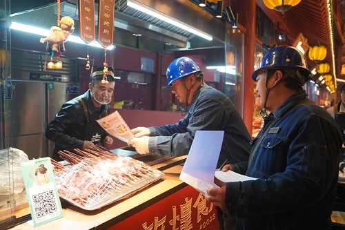 “老板,您的攤位線路沒問題,別讓電器超負荷運行,出現(xiàn)任何用電問題請及時聯(lián)系我們。”2月3日晚,在敦煌燒烤爭霸賽現(xiàn)場,國網(wǎng)敦煌市供電公司工作人員正在對賽場線路設(shè)備進行巡視檢查,以確保競賽的順利進行。