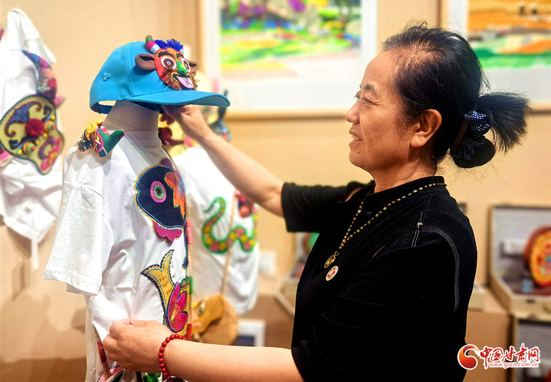 趙星萍的藝術(shù)創(chuàng)作扎根鄉(xiāng)土,從剪紙系列起步,拓展至創(chuàng)意香包,如今又融合剪紙、香包、刺繡、布貼畫等傳統(tǒng)技藝,開發(fā)出香包童裝T恤、刺繡帽子、剪紙臺燈等特色文創(chuàng)產(chǎn)品。其作品既傳承了隴東大地簡潔明快的藝術(shù)基因,又展現(xiàn)出新時代的創(chuàng)新活力。