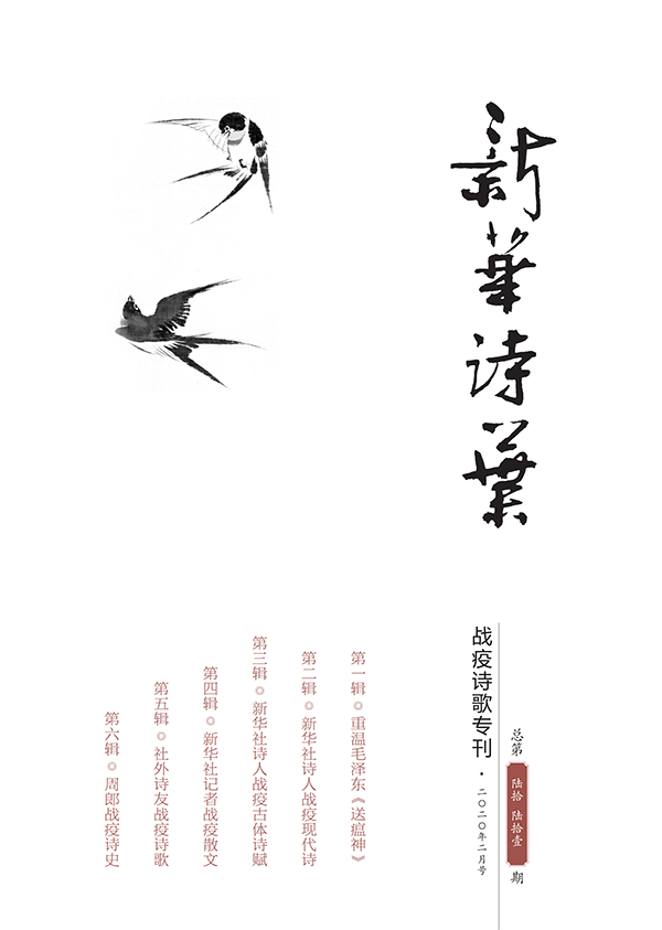 《戰(zhàn)疫詩(shī)歌??肥窃谛氯A社原副社長(zhǎng)何東君,原社黨組成員、秘書長(zhǎng)張錦的共同倡議策劃和組織指揮下,在較短時(shí)間內(nèi)高效率、高質(zhì)量完成的。這本??襁_(dá)140多頁(yè),共由六大單元組成。其中,第一輯開篇重溫毛澤東《送瘟神》,由何東君撰文回顧新中國(guó)戰(zhàn)勝血吸蟲病的悲壯歷史,以期為今日抗擊疫情汲取戰(zhàn)天斗地的民族精神力量;第二、第三輯分別刊登新華社記者編輯們抗疫主題的現(xiàn)代詩(shī)和古體詩(shī),風(fēng)格或豪放雄渾,或沉郁含蓄;最后一輯是周郎戰(zhàn)疫詩(shī)史專輯,專門刊登新華社高級(jí)編輯周清印的180首原創(chuàng)抗疫題材詩(shī)詞,彰顯對(duì)中華詩(shī)史傳統(tǒng)基因的繼承創(chuàng)新。