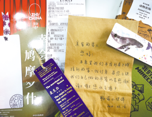 書店人為外賣訂單寫下溫暖留言。美團 供圖