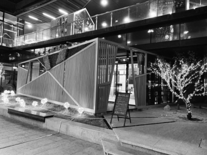 小眾書坊位于北京市南鑼鼓巷毗鄰的后圓恩寺胡同,周圍環(huán)境比較清靜。相比之下,因優(yōu)越的地理位置,雍和書庭周圍交通更為便利。沿著雍和宮橋向北走400多米,就可以看到位于地壇東門對(duì)面的雍和宮壹中心,走下樓梯,正對(duì)著一處四面落地玻璃的建筑,就是雍和書庭。在四圍的木格子和日本式枯山水裝飾下,這家玻璃書店顯得既有些隱秘又足夠開放。走在北京春天的街頭,透過雍和書庭的燈光,讓人深深感受到閱讀帶來的寧靜與溫暖。