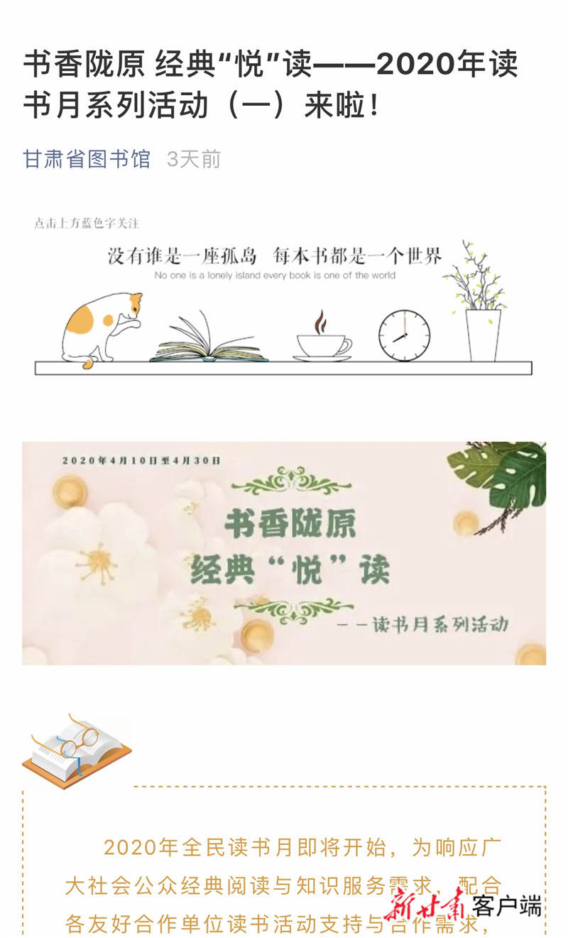 讓我們一起讀書(shū)吧!甘肅省圖書(shū)館推出線上讀書(shū)月系列活動(dòng)