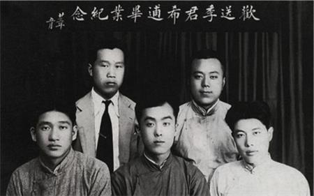 1934年,季羨林(中)大學畢業(yè)前與同學合影。資料圖
