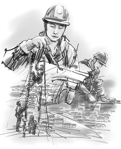 就個人條件而言,胡洪煒一米八的身高其實并不適合帶電作業(yè),但三年軍營練就的結(jié)實精壯以及先天的敏捷機靈完美地補充了身高的短板。多年之后,閆旭東依然清晰地記得徒弟曾經(jīng)帶給他的震撼。帶電作業(yè)兩大危險,一是高空,一是帶電。軟梯是電力人得以騫翮遠翥的依傍,可攀爬軟梯卻一度打濕了胡洪煒振翅欲飛的翅膀。新員工入職培訓(xùn)的訓(xùn)練場上,別人用一個月已經(jīng)熟練掌握了技巧,笨鳥胡洪煒卻剛剛及格。氣喘吁吁地爬到基塔的頂端,將自己蟄伏在離地面幾十米高的電線上,想像自己是一只俯瞰大地的鳥雀,一只暫時休整的雨燕,抑或是被印刷在音樂課本上的音符。音符在胡洪煒耳邊輕聲吟唱:我要飛得更高,更高!
