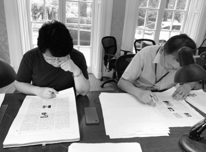 上海辭書出版社社長秦志華(右)和副總編輯張敏審讀《辭?!罚ǖ谄甙妫┬?。