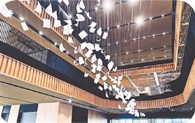 走進大廳,英國藝術家保羅·考克斯基在挑高大廳創(chuàng)作的公共藝術作品“陣風”映入眼簾。上千本白紙書頁隨風騰飛的瞬間在空中凝結下來,象征著閱讀的快樂與思考,震撼的畫面宛如置身充滿藝術氣息的美術館。