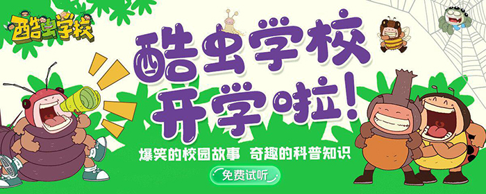 根據(jù)原創(chuàng)昆蟲科普知識爆笑校園漫畫改編的《酷蟲學(xué)??破沼新暪适隆?,以爆笑幽默的校園故事、新奇有趣的科普知識、廣播劇標(biāo)準(zhǔn)的精心制作等特點,激發(fā)小讀者對大自然的熱愛,建立生態(tài)文明的宏觀觀念。