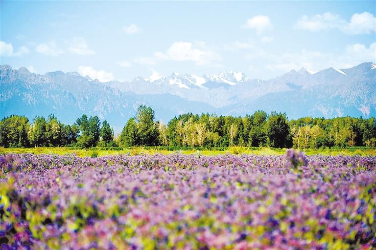 一年四季,祁連山綻放出獨特韻味。連綿的雪峰,白凈的云朵,綠色的山巒,純凈的湖泊,如茵的草原,悠閑的牛羊,紫色的花海,紅色的丹霞,黃褐色的丘陵,儼然一幅美麗的畫卷。