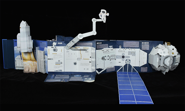 圖為《繁星作伴好還鄉(xiāng):空間站全景立體書》展開側面圖