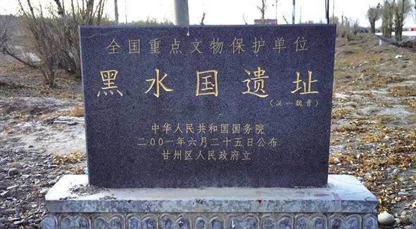 在于右任老先生寫詩(shī)后的自注,“甘州西黑水河岸古墳占地十余里,土人稱為‘黑水國(guó)’,掘者發(fā)現(xiàn)中原灶具甚多,遺骸脛骨皆長(zhǎng)……”古黑水國(guó)遺址坐落在甘肅省張掖市甘州區(qū)西北17公里處,該遺址又稱黑水國(guó)城堡,俗稱黑水國(guó),民間亦稱甘州老城,是“絲綢之路”上的著名驛站,距今有4000多年的歷史,是集漢唐古城、史前遺址、古寺院遺址、古屯莊、古墓葬為一體的龐大的甘州“歷史古籍”,也是集古代人文風(fēng)光、沙丘、湖泊、蘆蕩、濕地為一體的河西“特色畫冊(cè)”,在考古界有“河西走廊文物寶地”之稱,1908年由俄羅斯考古學(xué)家和探險(xiǎn)家彼得·科茲洛夫發(fā)現(xiàn)并發(fā)掘,它的發(fā)現(xiàn)是當(dāng)時(shí)震驚中外的考古學(xué)大事件,2001年,古黑水國(guó)遺址被國(guó)務(wù)院公布為全國(guó)重點(diǎn)文物保護(hù)單位。
