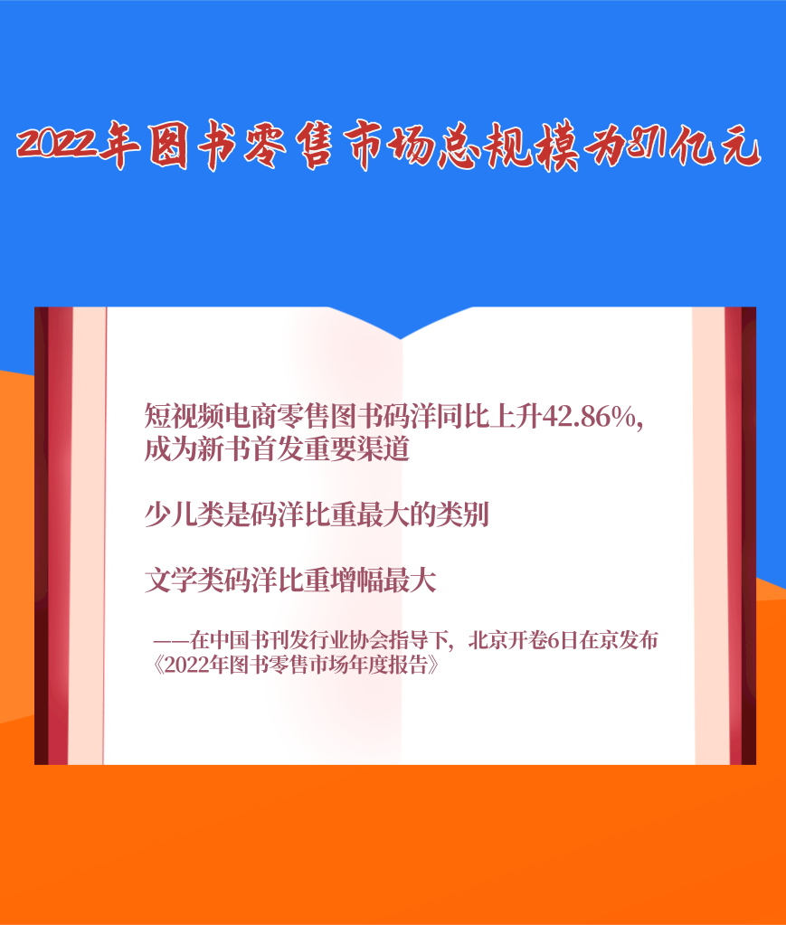1月6日,在中國書刊發(fā)行業(yè)協(xié)會(huì)指導(dǎo)下,北京開卷信息技術(shù)有限公司在京發(fā)布《2022年圖書零售市場(chǎng)年度報(bào)告》。報(bào)告顯示,2022年我國圖書零售市場(chǎng)碼洋規(guī)模為871億元。短視頻電商零售圖書碼洋同比上升42.86%,碼洋占比趕超實(shí)體書店,成為新書首發(fā)重要渠道。
