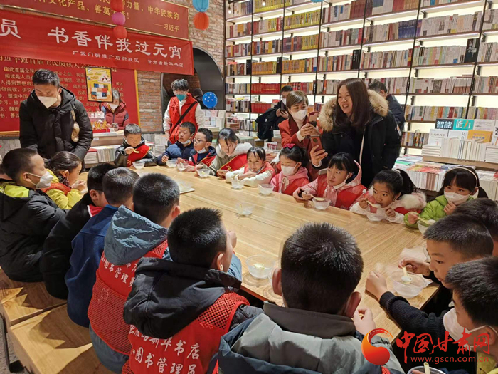 平時,新華書店的工作人員是怎樣工作的?帶著心中的疑問,在工作人員的精心組織中,小朋友們通過視頻短片了解了新華書店80多年的人文歷史及圖書流通的過程、智慧書架的使用方法等知識,體驗了圖書分類后在書架陳列的過程?;顒咏Y束,工作人員還不忘給孩子們送上一碗熱氣騰騰的元宵。