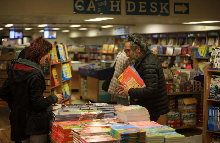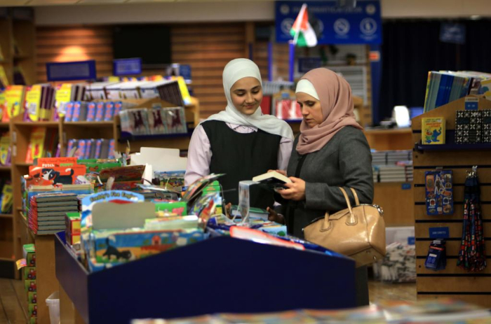 2月13日,在約旦亞喀巴港,人們?cè)?ldquo;望道號(hào)”上挑選書籍。